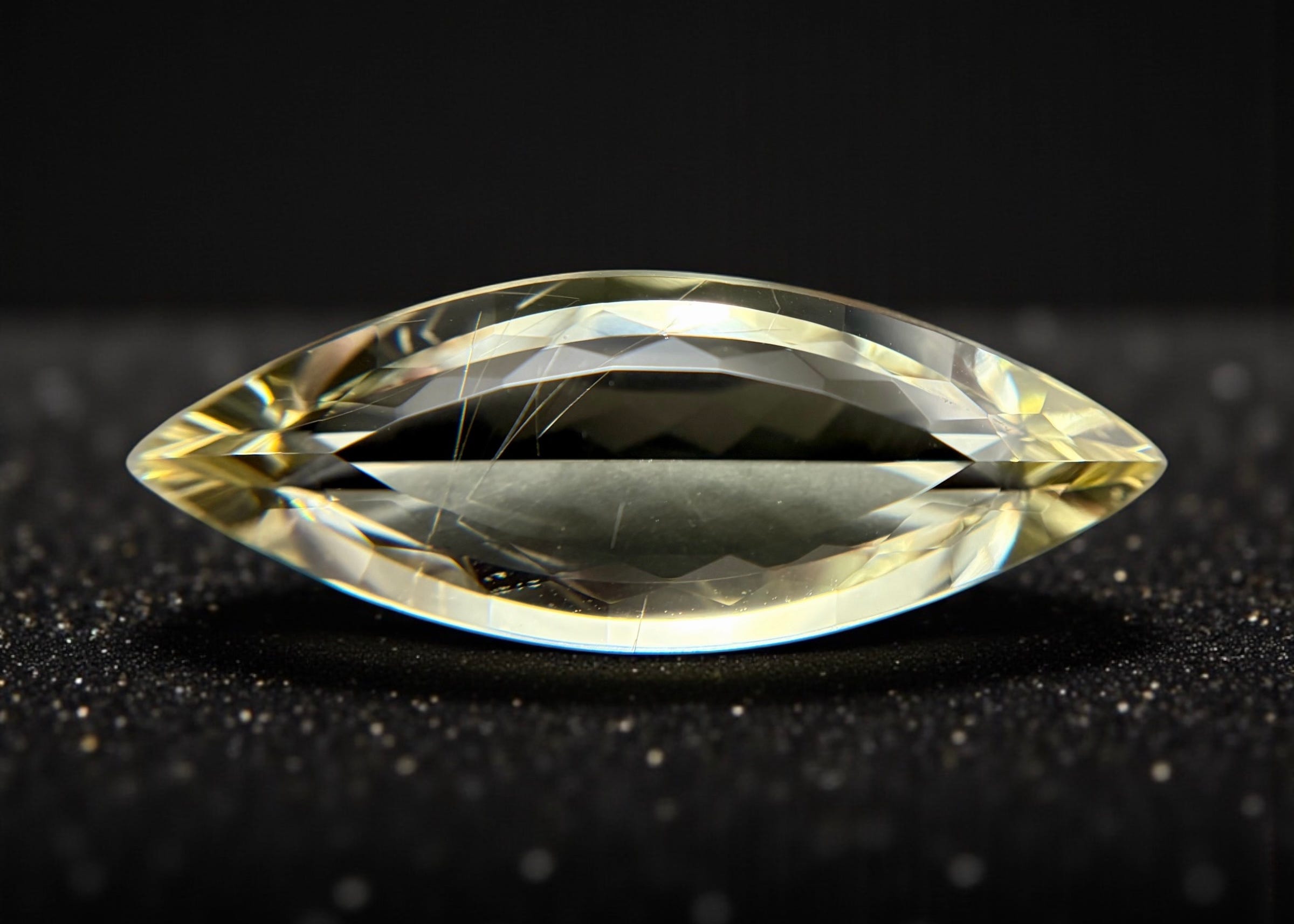 An unexpectedly large, marquise-cut, light yellow-green, nearly eye-clean Euclase. You don’t need to know what that is to appreciate this article. Stay with me, I’ll show you.