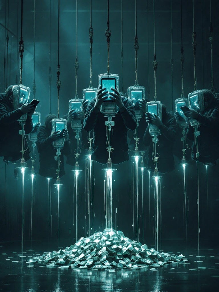 Somewhere in a server farm, Sarah's data was being processed alongside millions of others. Her broken heart had generated 847 hours of engagement time. Her destroyed family had produced $3,200 in advertising revenue. Her genuine human suffering had been optimized, monetized, and packaged for the next quarterly earnings report.